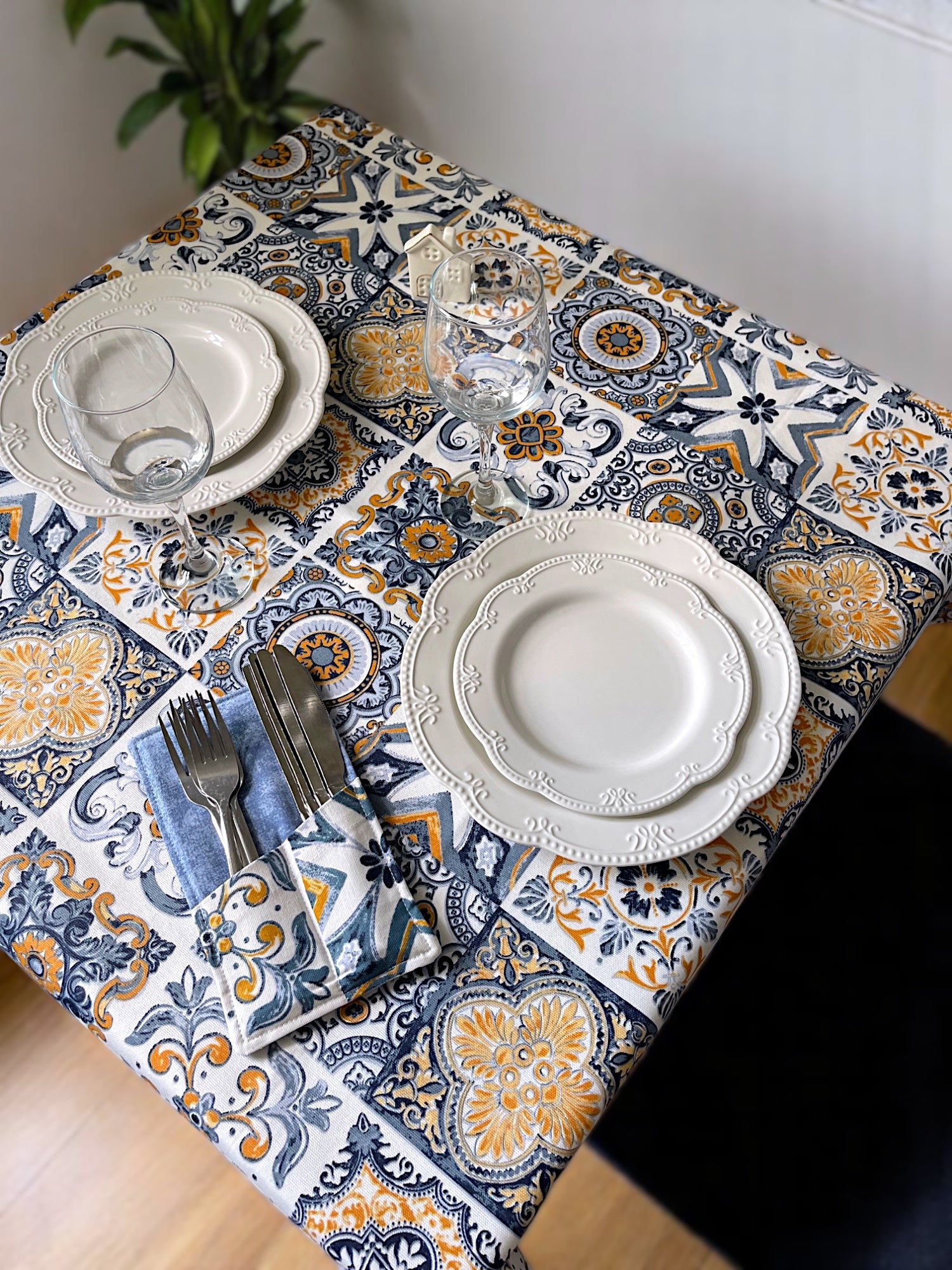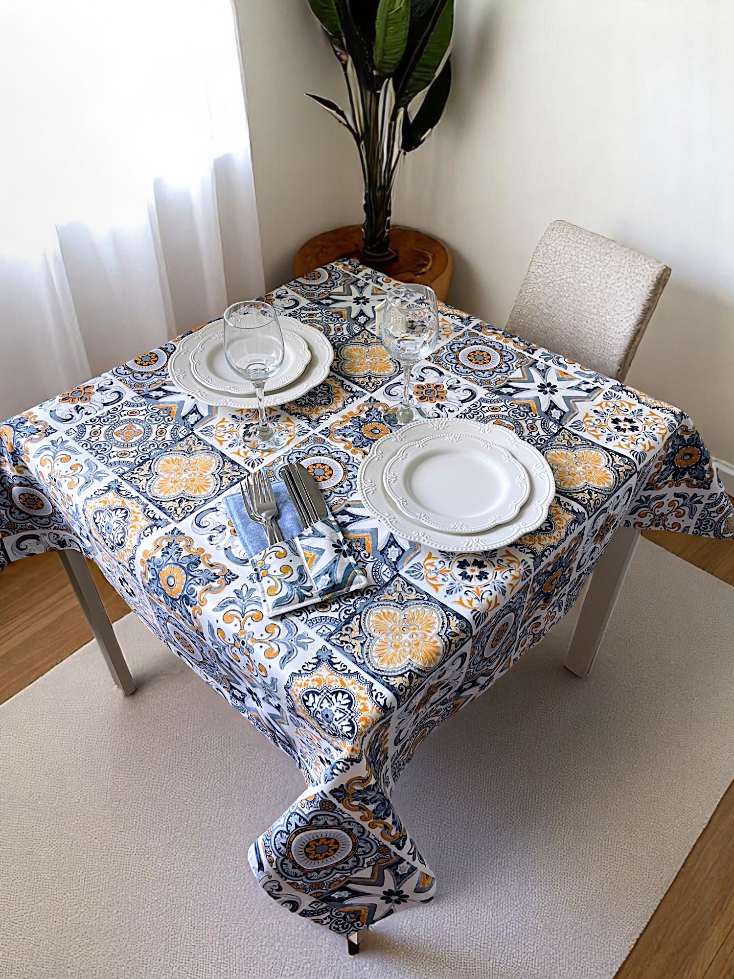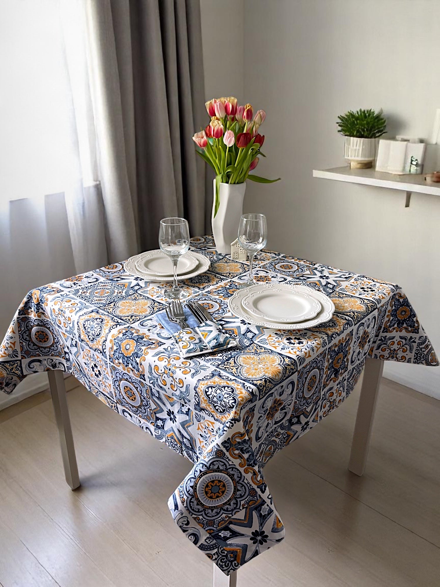 Teflonový bavlněný ubrus na stůl se vzorem Modrá mozaika– elegantní a praktický doplněk pro každou příležitost