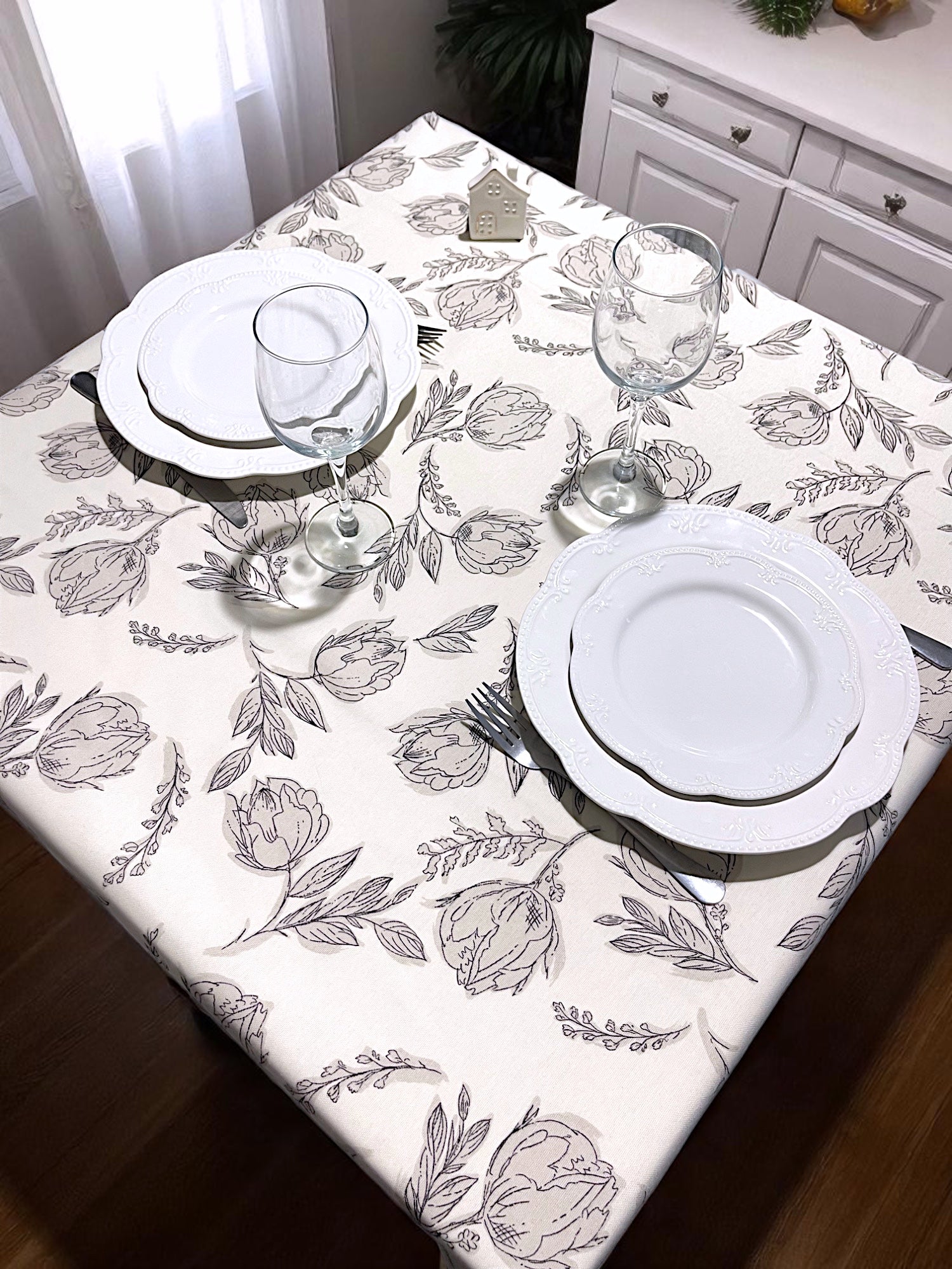 Teflonový bavlněný ubrus na stůl se vzorem Konturové květiny na světlém pozadí elegantní a praktický doplněk pro každou příležitost